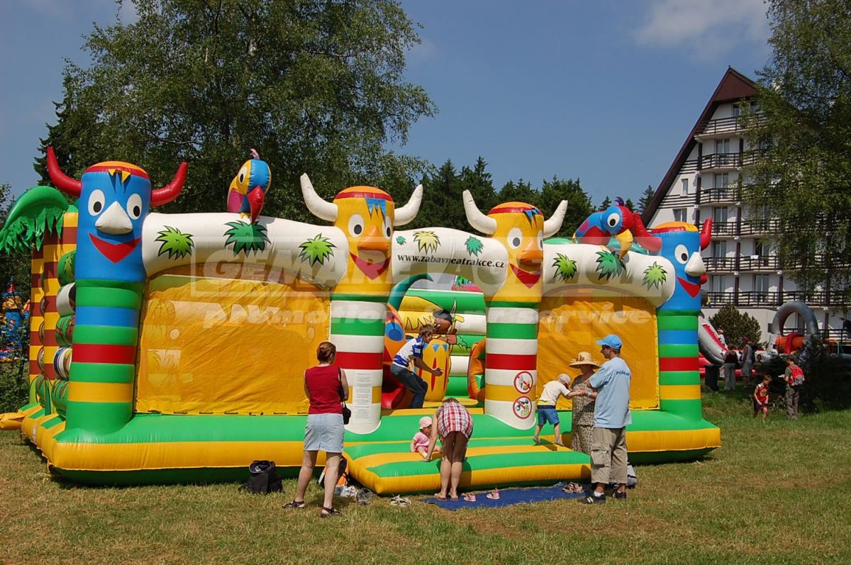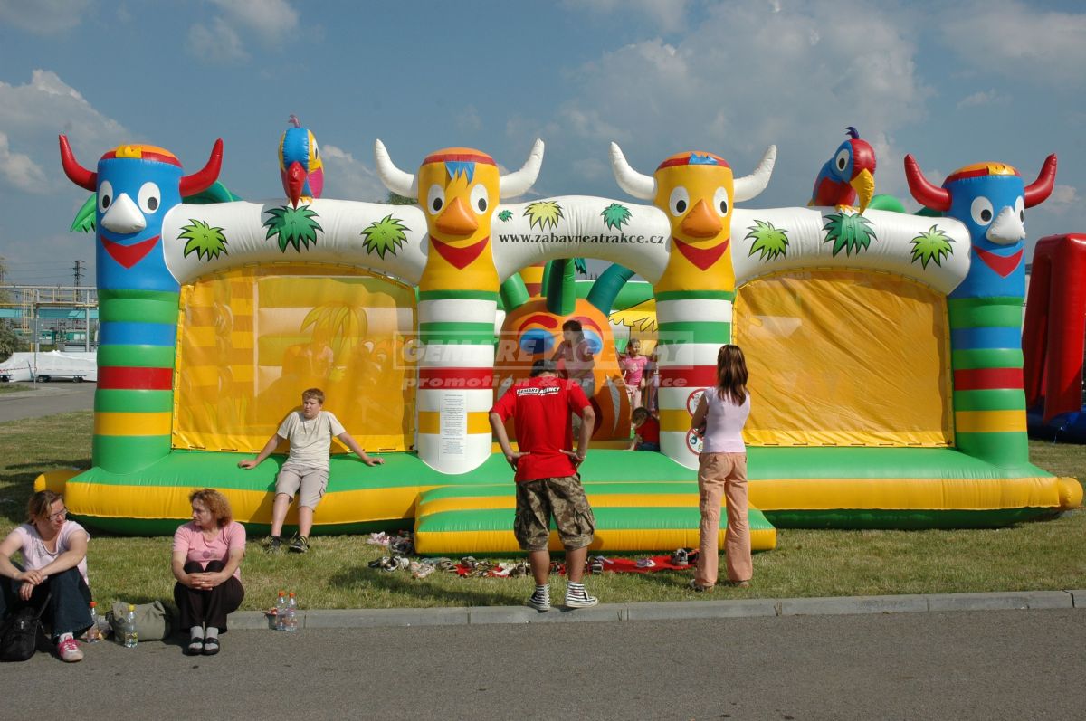 Zabezpečujeme prenájom nafukovacích aktivných centier pre firemné akcie, detský deň, family day, obecné slávnosti, roadshow, veľtrhy a ďalšie sprievodné programy. Ako jediná firma v ČR a SR disponujeme najširšou ponukou nafukovacích šmykľaviek pre deti.