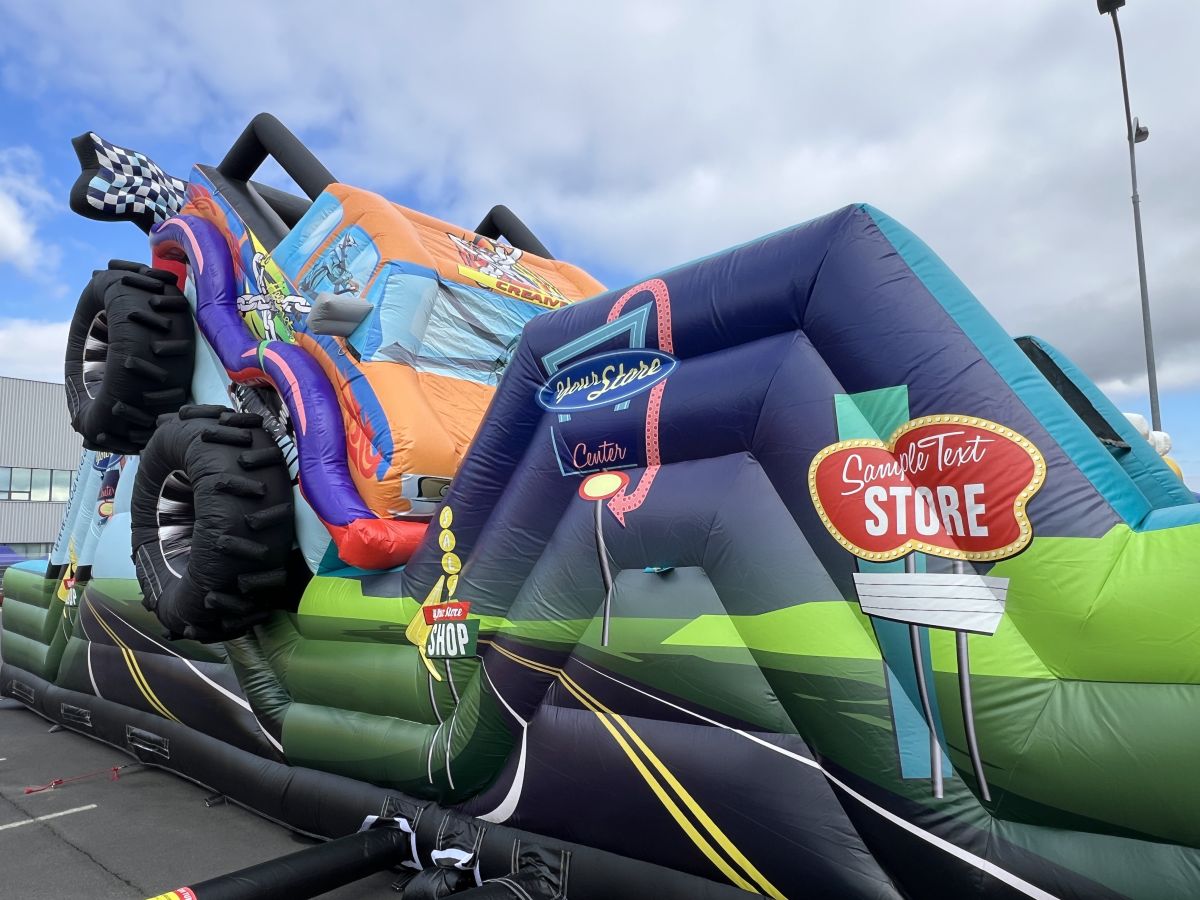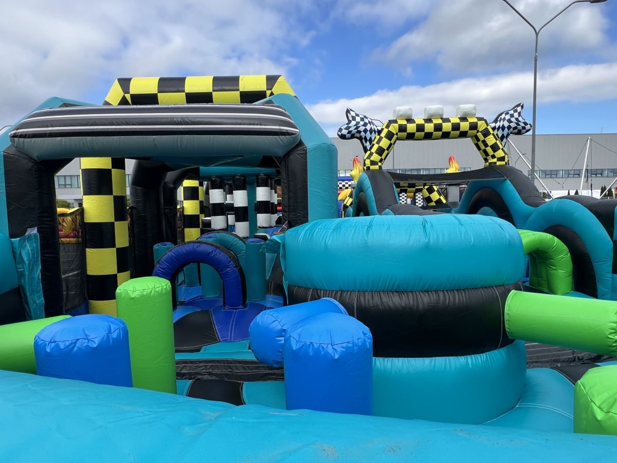 Nafukovacia prekážková dráha v dizajne závodných áut je rajom nielen pre milovníkov áut, ale aj všetkých športových nadšencov. Atrakcia obsahuje set aktivít ako je mini horolezecká stena, preliezky, nafukovacie tunely, prekážky, stĺpy až po záverečný sklz. Prekážková dráha je štandardne inštalovaná do tvaru U (odporúčame – vchod aj východ z atrakcie je na rovnakej strane), ale v prípade záujmu je možné vytvoriť aj jednu dlho dráhu.
