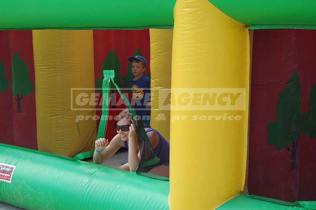 Nafukovacie bludisko je zábavná atrakcia vhodná pre deti i dospelých. V nafukovacom bludisku je veľa zradných ciest a zákutia, ktorá potrápi orientačné zmysly každého dobrodruha. Nafukovacie bludisko odporúčame nielen pre detský deň alebo firemnú akciu, ale tiež ako súťažné disciplínu športových hier a teambuildingu.