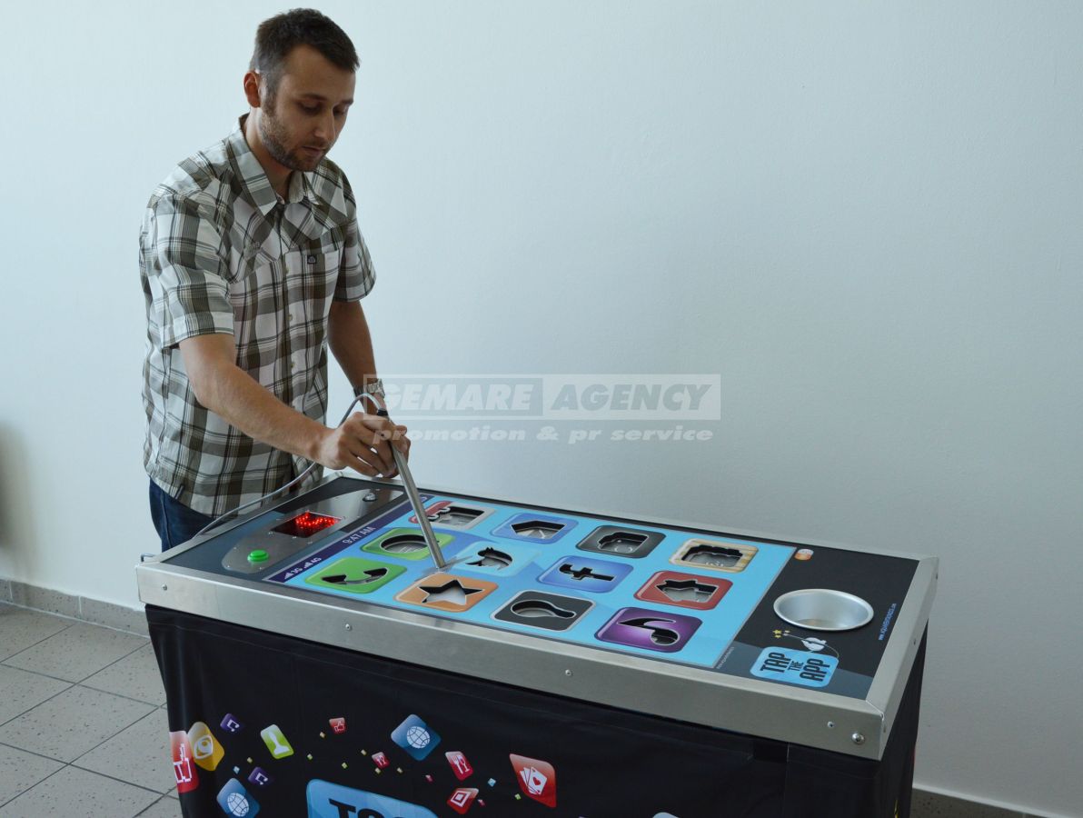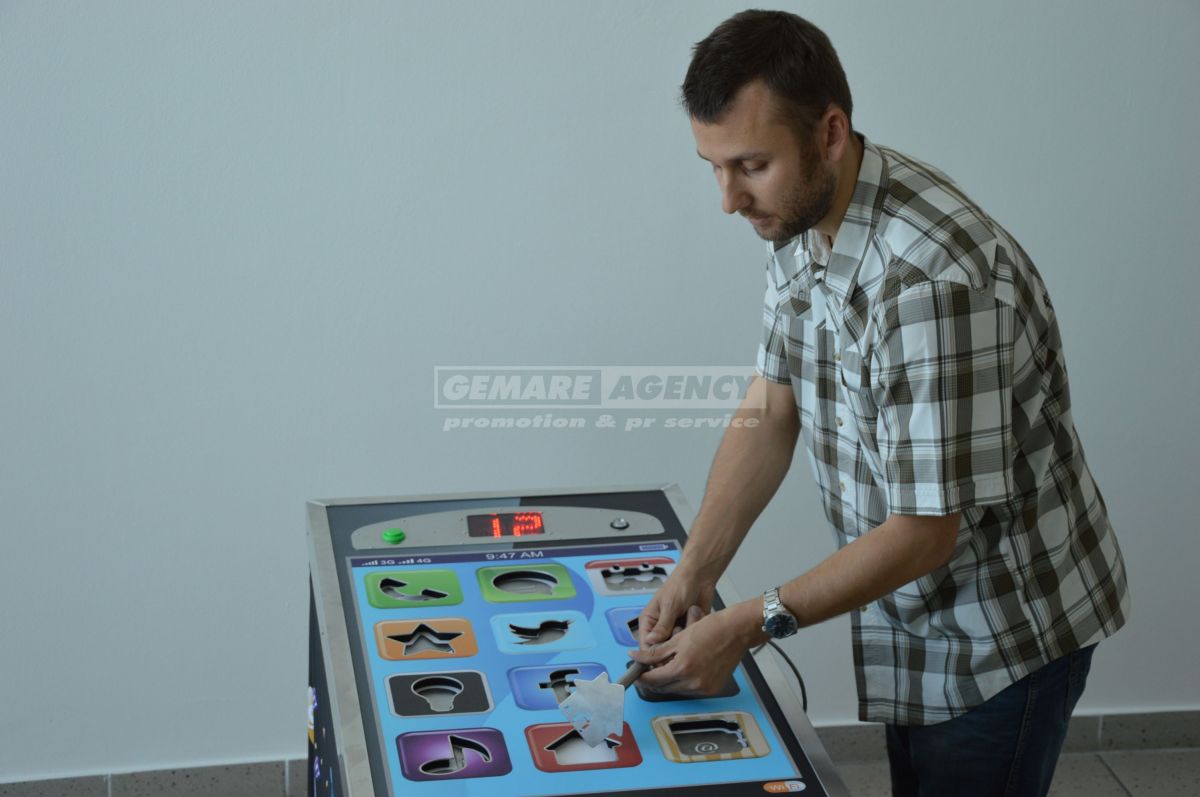 Mobilný telefón obrích rozmerov, ako novinka. Pomocou magnetickej ceruzky sa snažíte vybrať, z daných výrezov všetky symboly na displeji.
