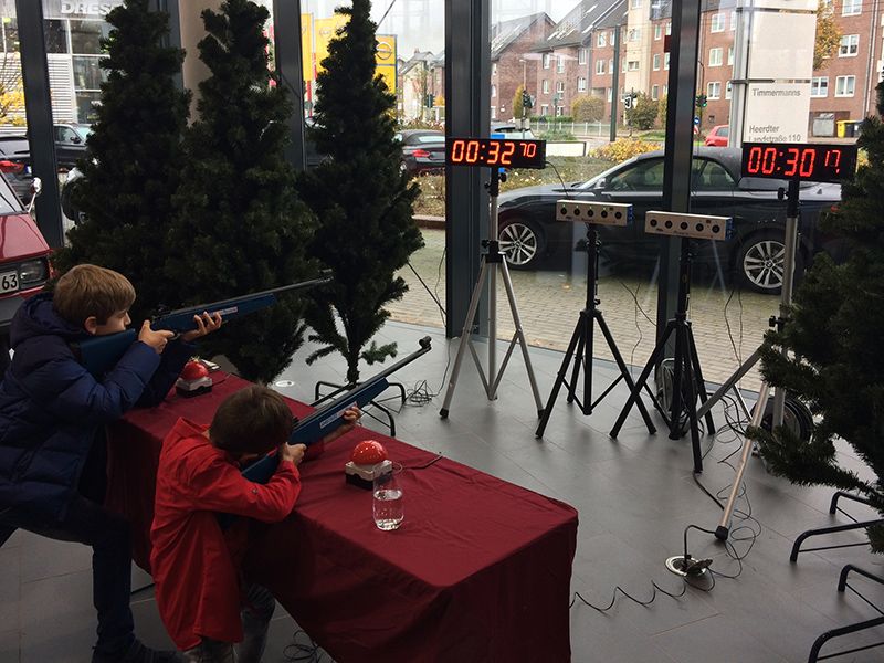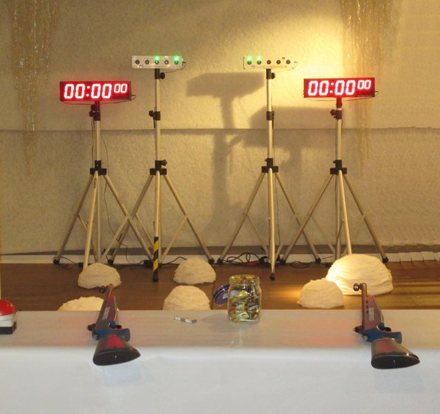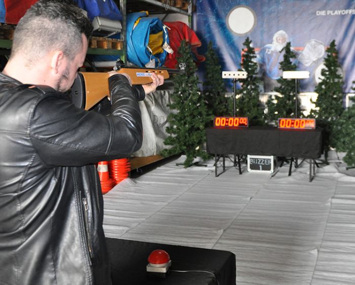 Biatlonový simulátor je určený pre 2 hráčov, ktorí pomocou laserové zbrane musí zasiahnuť 5 bodov terče v najrýchlejšom čase. Prenájom biatlonového simulátore patrí medzi obľúbené pre firemné akcie, večierky, športové akcie a teambuildingy, ale aj detské dni alebo family day. V prípade záujmu o prenájom biatlonového simulátoru pre vonkajšie akcie, odporúčame vrátane prenájmu nožnicového stanu. Biatlonový simulátor je určený pre dospelých i deti.