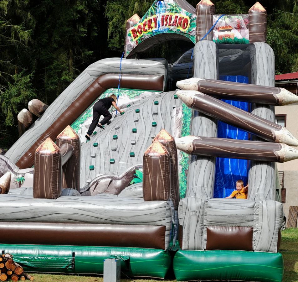Čo je nutné zabezpečiť na prenájom atrakcie horolezecká stena so šmykľavkou Rocky Island: