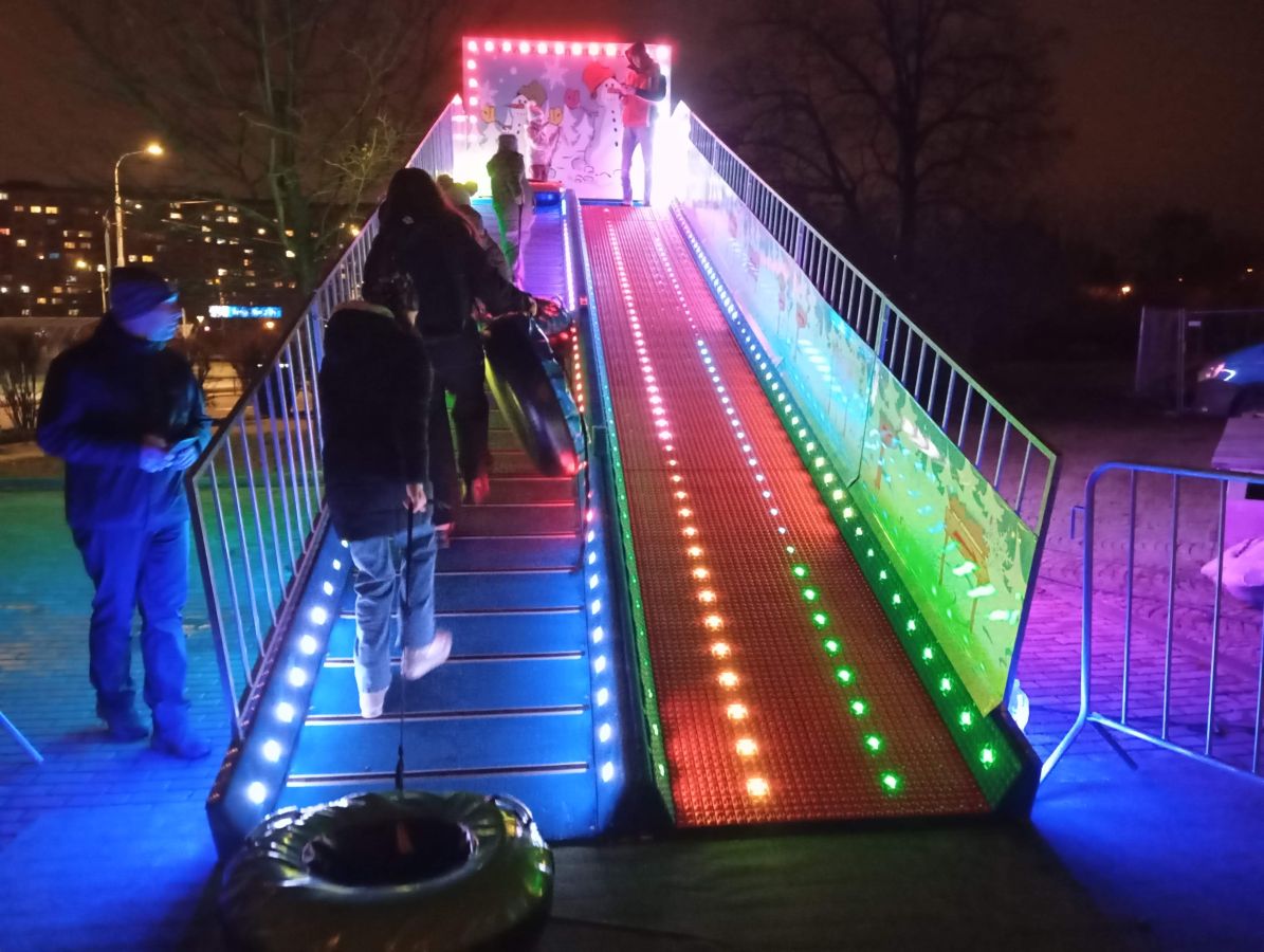 Prenájom mobilného snowtubingu odporúčame aj na večerné akcie, kedy vynikne farebné osvetlenie atrakcie. Je teda vhodnou voľbou aj pre festivaly, obchodné centrá (late night shopping) alebo zimné obdobie,