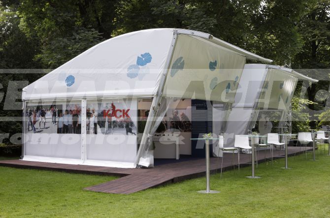 Exkluzívna podoba party stanu s polkruhovou strechou s presahom, cez základné hĺbku stanu 5 metrov. Modul stanu má rozmer 5 x 5 m, a je možné ho ďalej predlžovať o ďalších 5 m dĺžky na 5 x 10 m, 5 x 15 m, 5 x 20 m atď. Párty stan Polygon je vhodný pre firemné akcie, prezentácie, VIP stretnutia, golfové turnaj apod.