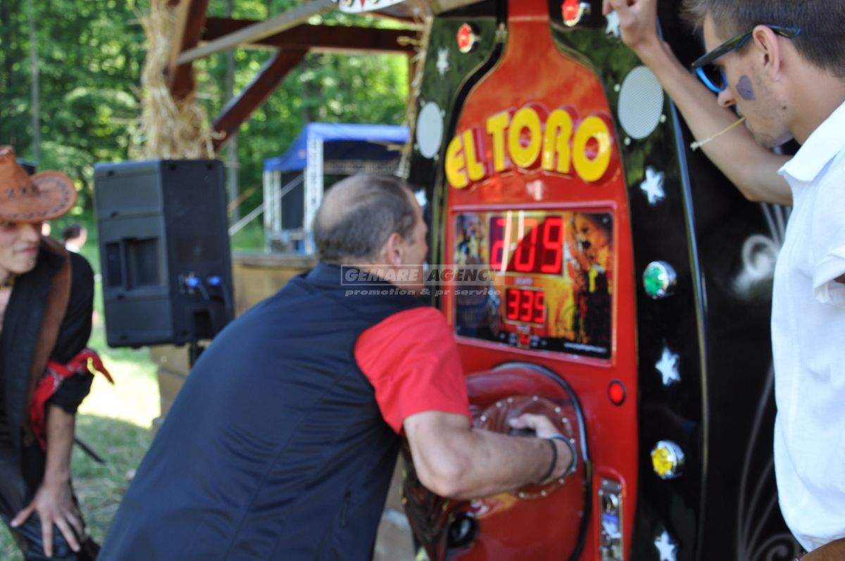 Ako neohrozený toreoádor sa budete cítiť na simulátore krotenie býka. Súťažiaci musí chytiť býka za rohy a prekonať jeho vzdor. Simulátor hodnotí Váš výkon body, ktoré sú zobrazené na displeji.
