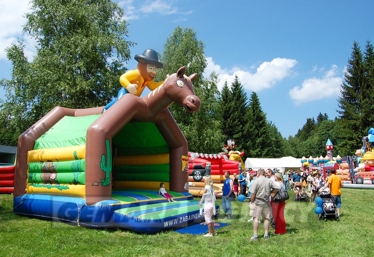 Skákací hrad Kovboj je zastrešený skákací hrad a tak je vhodným úkrytom pre deti aj v prípade drobného dažďa. Skákací hrad kovboj je vhodný pre detský deň, firemné a kultúrne podujatia s westernovú tematikou.