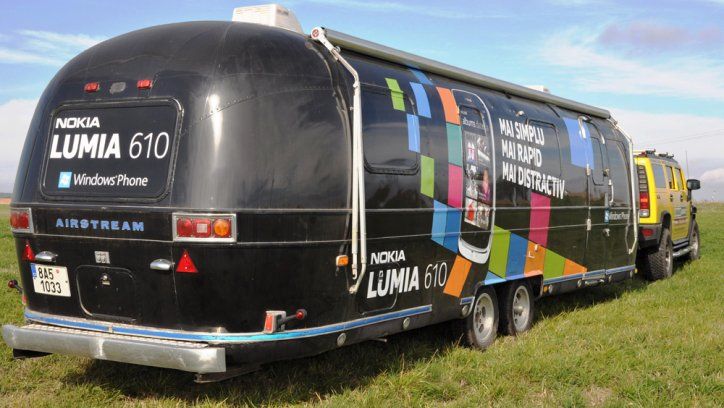 Airstream - americká legenda na štyroch kolesách. Vnútorný priestor showroome ponúka využitie nielen pre veľtrhy a výstavy, ale aj pre roadshow. Airstream má bočné výklopnou strechu pre pódium o rozmere 4x2m (nie je podmienkou využívania) a umožňuje vstup do karavanu. Vnútorné vybavenie - VIP kútik, osvetlenie, rozvody el. energie, ozvučenie.