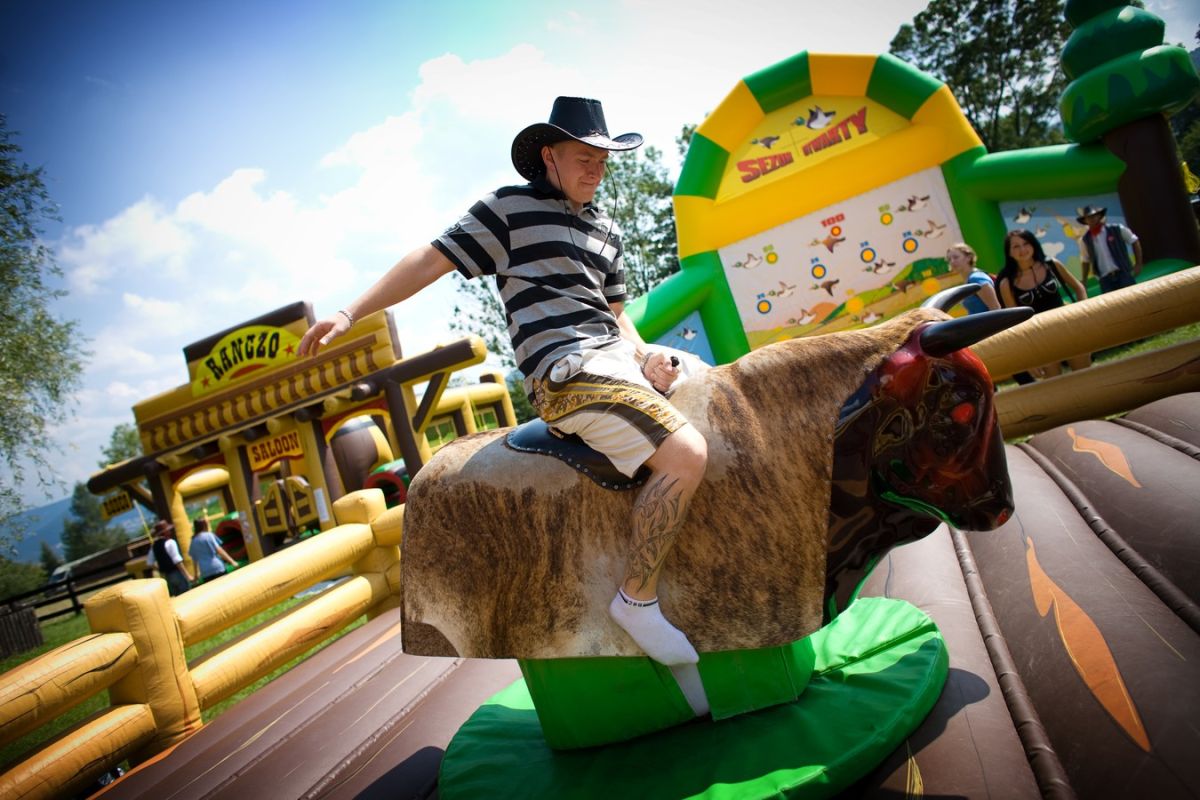 - ELEKTRICKÝ BÝK: kovboj musí osedlať býka a udržať sa na ňom čo najdlhšie. Čas je zobrazovaný na digitálne časomiere.