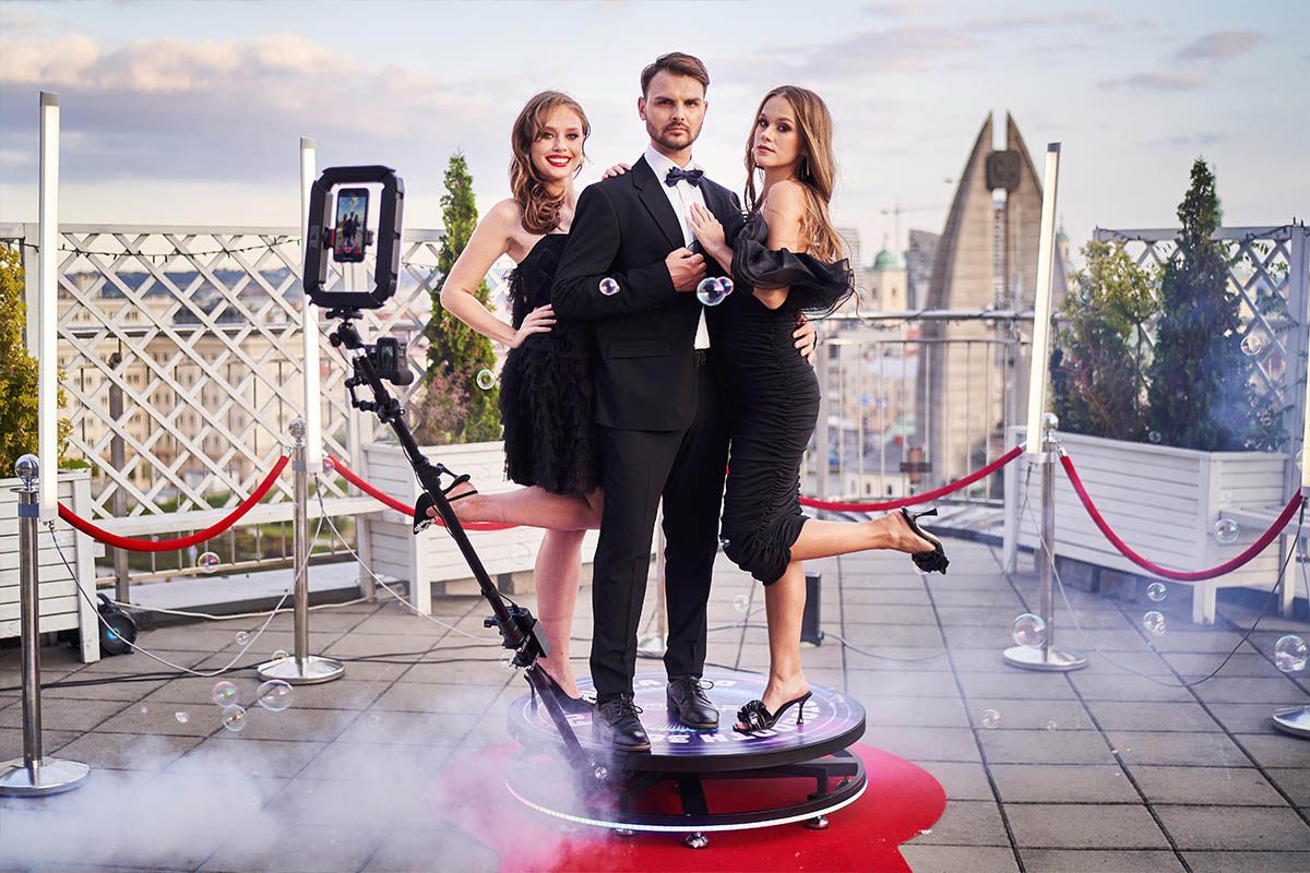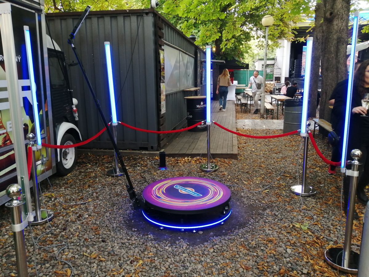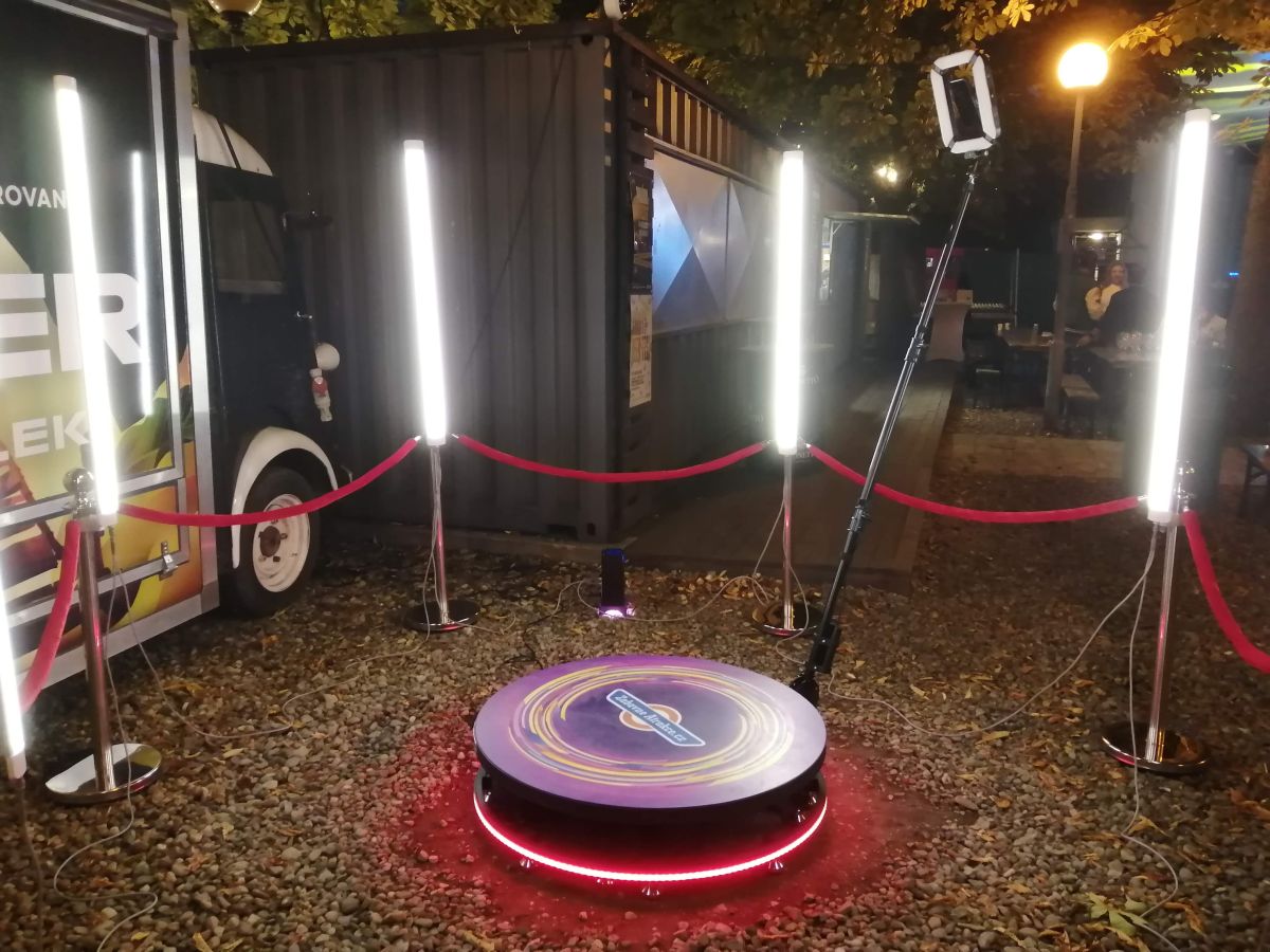 Fotokútik 360° - dokonalá zábava pre každú akciu. Miesto fotiek video, miesto nehybného pózovania tanec na platforme, miesto fotiek do albumu, video na sociálne siete! Prenájom fotobudky 360° je možné kombinovať aj s prenájmom klasickej fotobudky a obsiahnuť tak široké pole zábavy a chutí návštevníkov akcie. Video spin 360° rozhýbe zábavu na každej párty