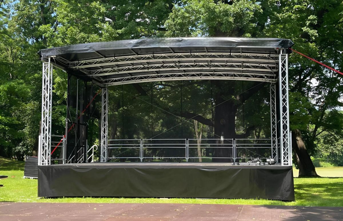 - rozmer pódia: 8 x 6 m, celkový rozmer mobilného pódia (prívesu) 10 x 6 m.