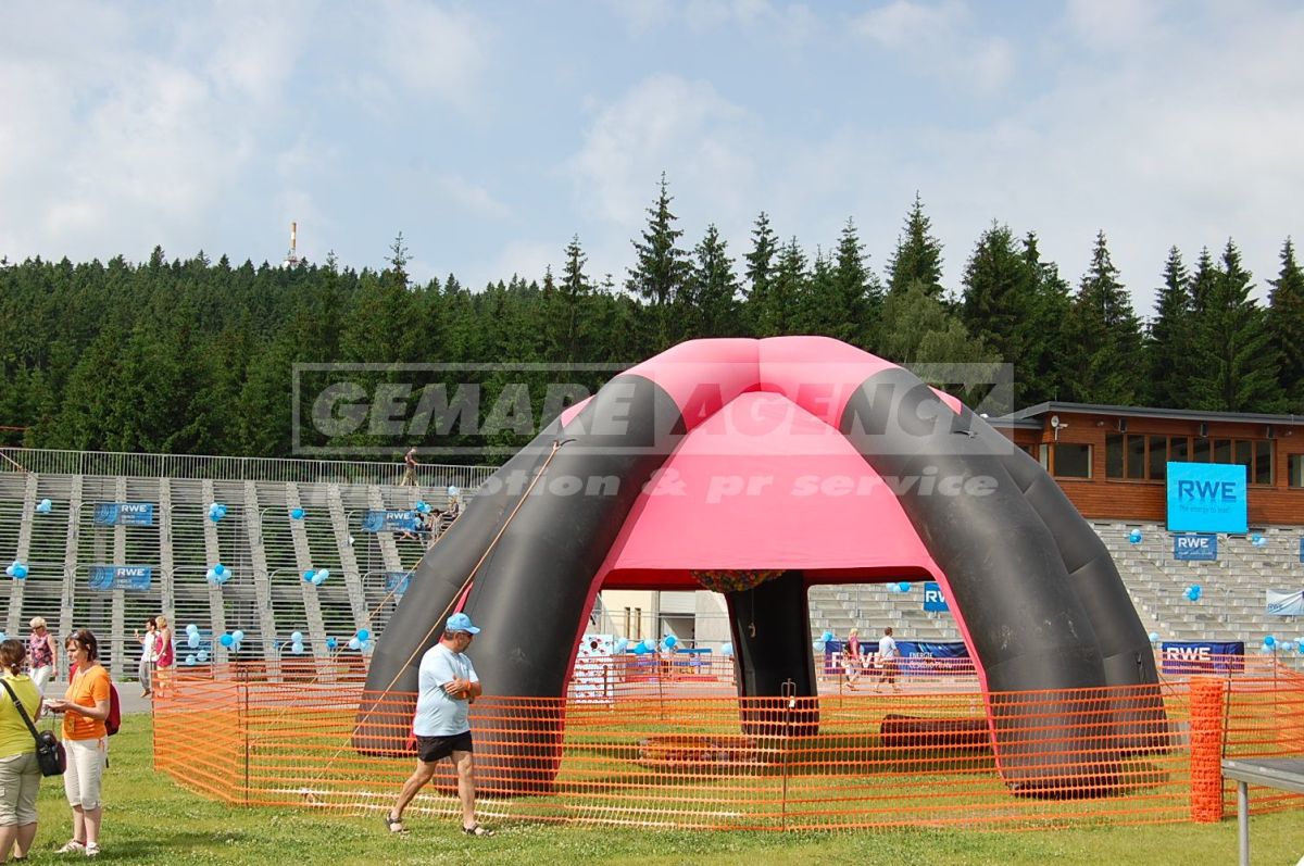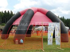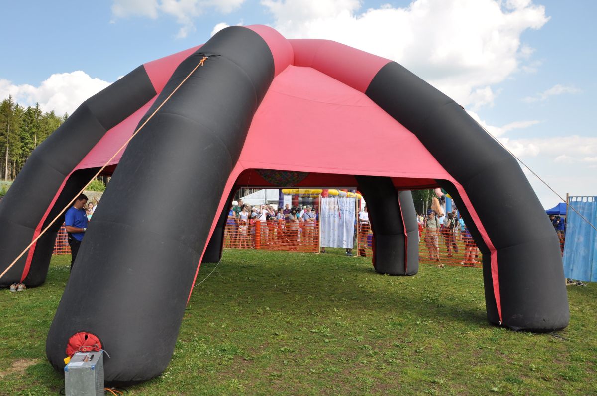 Neobvyklým a originálnym prístreškom v našej ponuke je nafukovací party stan. Party stan s priemerom desať metrov je možné zo všetkých strán otvoriť aj uzavrieť a prispôsobovať ho tak Vašim potrebám. Nafukovacie party stan je vhodný pre prezentačné akcie a roadshow. Neslúži ako pevné krytie pred nepriaznivým počasím, ale skôr ako dekoratívny prvok. Pozrite sa tiež na ponuku klasických párty stanov, ktoré sú vhodné pre firemné akcie, veľtrhy, výstavy, hudobné festivaly, športové a kultúrne akcie.