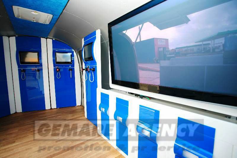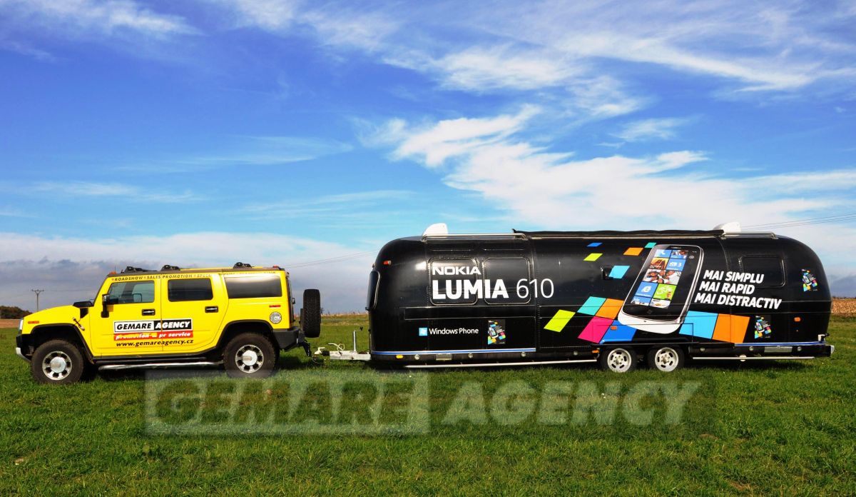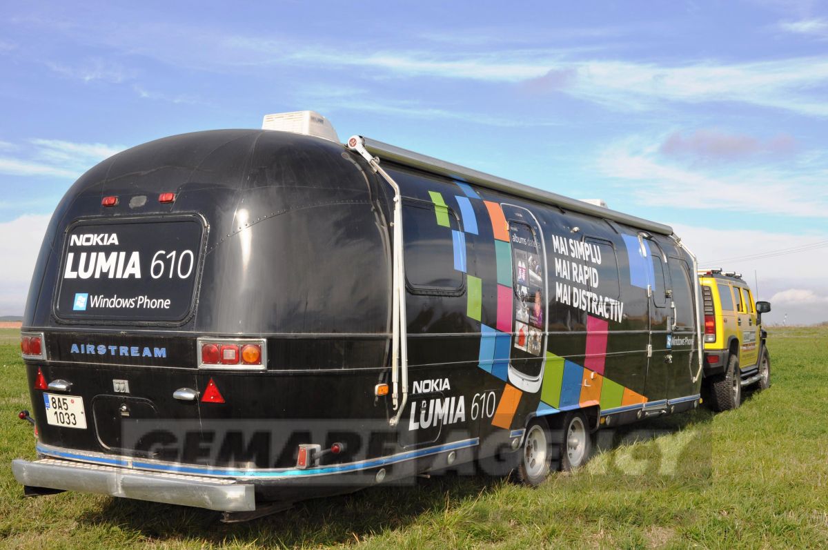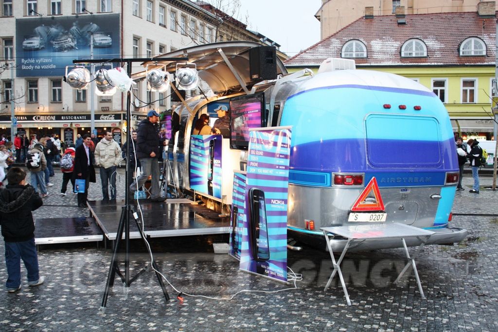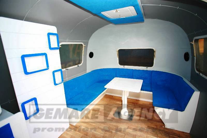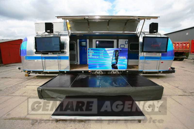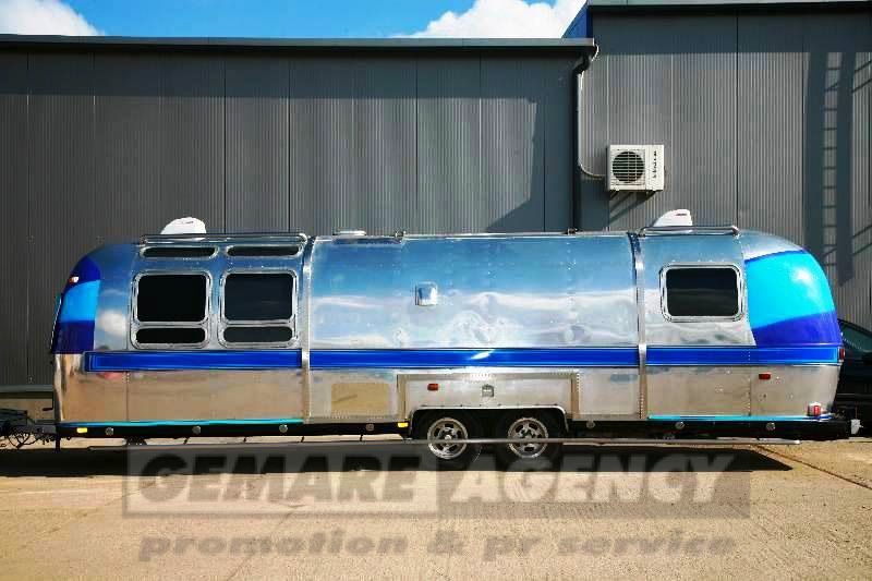 Americká legenda na kolesách - karavan Airstream. Vnútorný priestor ponúka využitie nielen pre veľtrhy a výstavy, ale aj pre roadshow. Výklopná bočná stena Airstreamu vytvára strechu pre podium o rozmere 4x2m (nie je podmienkou využívania) a umožňuje vstup do karavanu. Vnútorné vybavenie Airstream - VIP kútik, osvetlenie, rozvody el. energie, ozvučenie. Prenájom Airstream karavanu je vhodný pre roadshow, promotion akcie, reklamné kampane, veľtrhy, výstavy a hudobné festivaly.