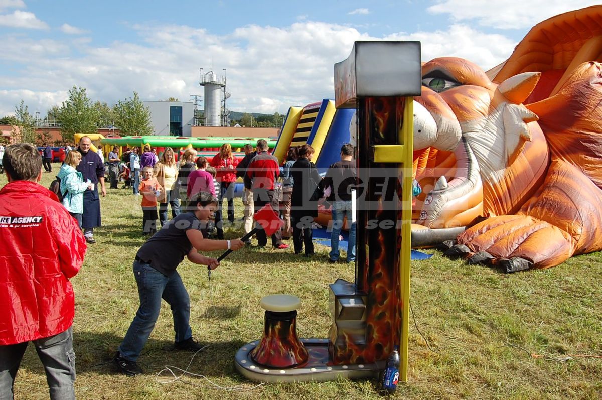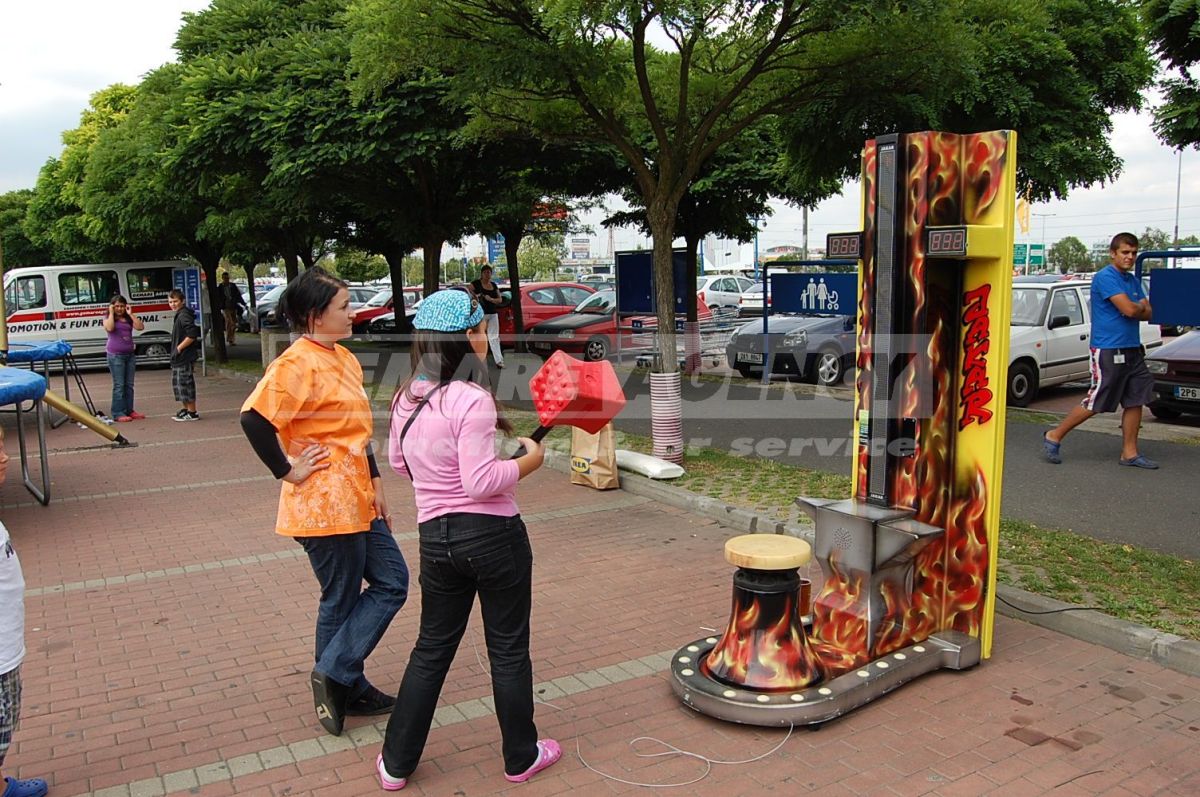 Atrakcie Silomer alebo tiež atrakcie Kladivo, preverí každého siláka. Stačí len udrieť do nákovy atrakcie Silomer a Váš výkon sa zobrazí na displeji. Atrakce silomer, atrakcie kladivo je vhodná pre family day, detský deň, firemné akcie a roadshow.