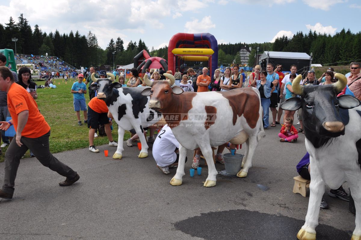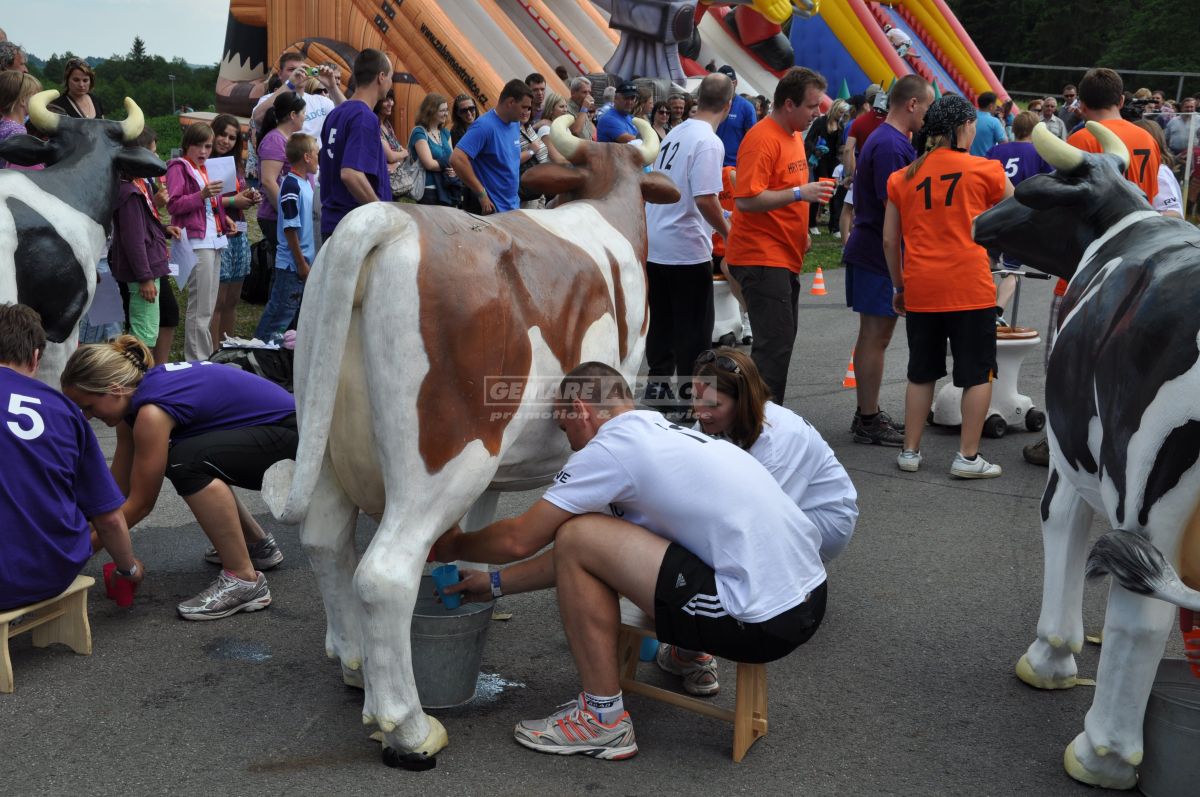 Simulátor dojenie kravy je vtipnou a zábavnou atrakciou, ktorá rozosmeje nielen samotných účastníkov, ale aj veľa prizerajúcich. Simulátor dojenie kravy je vhodný nielen na detské dni a teambuilding, ale poteší a pobaví aj na potravinárskych veľtrhoch, výstavách a roadshow. Ukážte zmysel pre humor a nebojte sa medzi svoje atrakcie zaradiť simulátor dojenie kravy!
