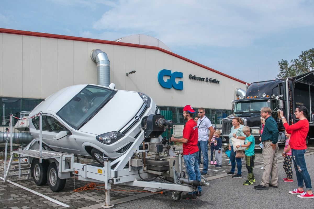 firemného dňa alebo mestských slávností o dôležitosti použitia bezpečnostných pasov v aute a prispejte
