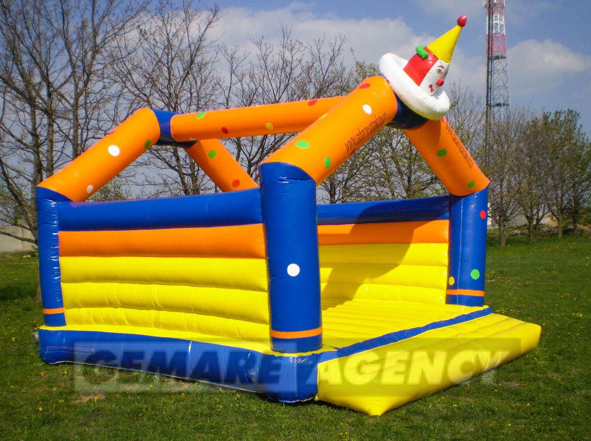 Obľúbený skákací hrad "Klaun" má v našej ponuke súrodenca. Nafukovací skákací hrad "Klaun II" prináša ďalšiu verziu známej postavičky, nové farby a odlišný design. Skákací hrad a nafukovacie šmykľavka je to najlepšie pre detský deň a akcie pre deti.