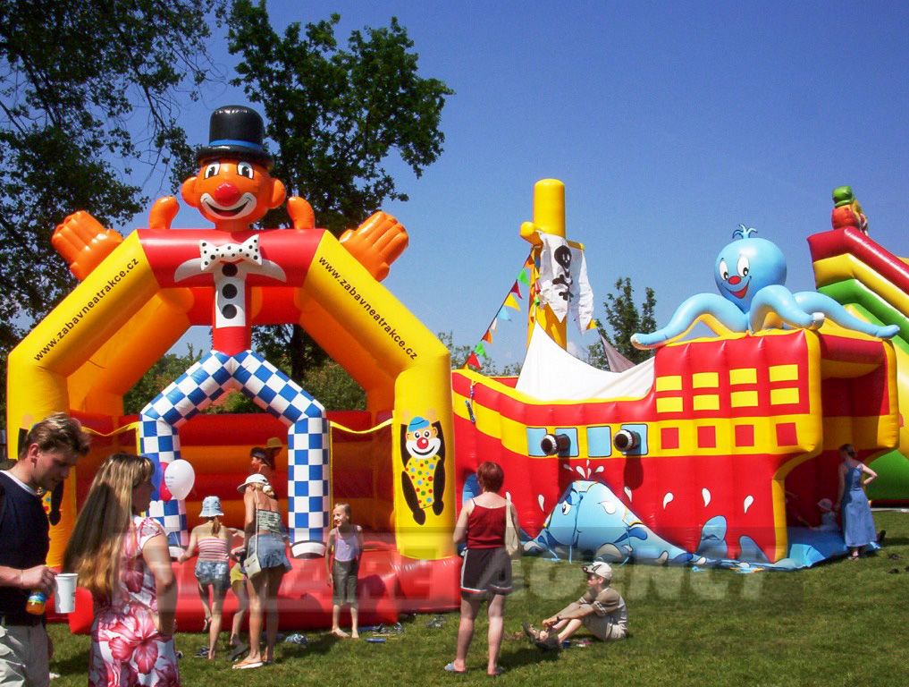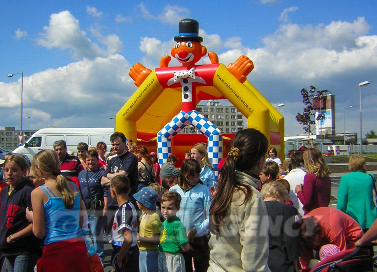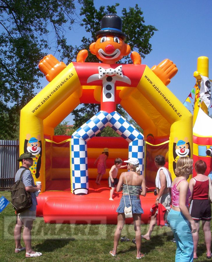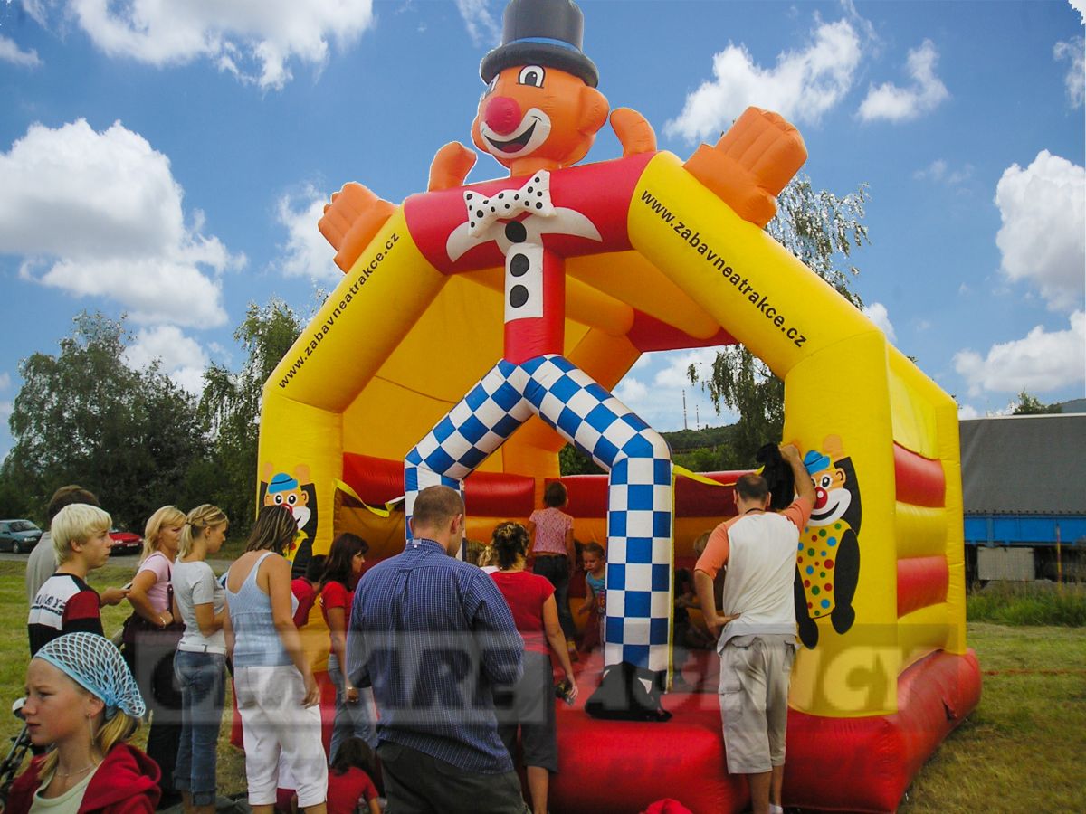 Najveselší skákací hrad z našej ponuky je v tvare klauna. Pestré farby, cirkusové motívy a klasické prevedenie nafukovacieho skákacieho hradu robia z "Klauna" stálicu medzi detskými atrakciami. Skákací hrad Klaun má ľahké zastrešenie chrániace deti pred slnečnými lúčmi a drobným dažďom.