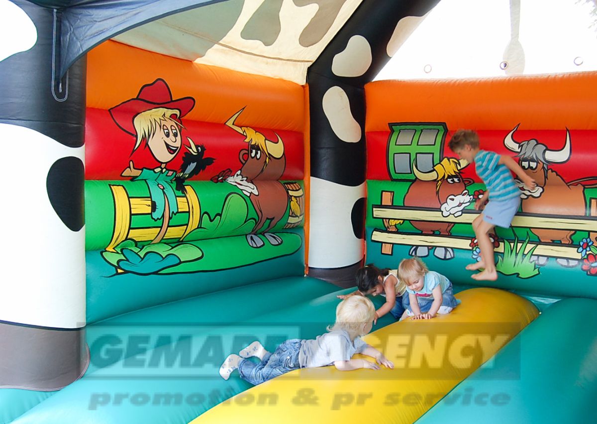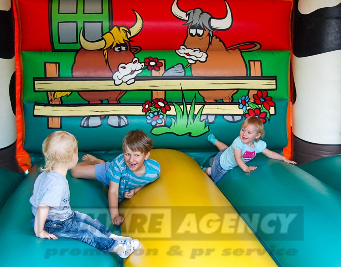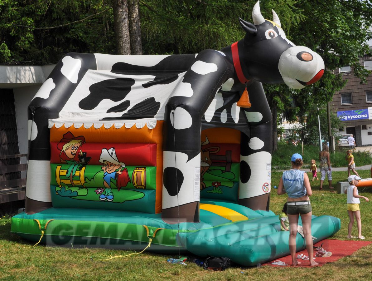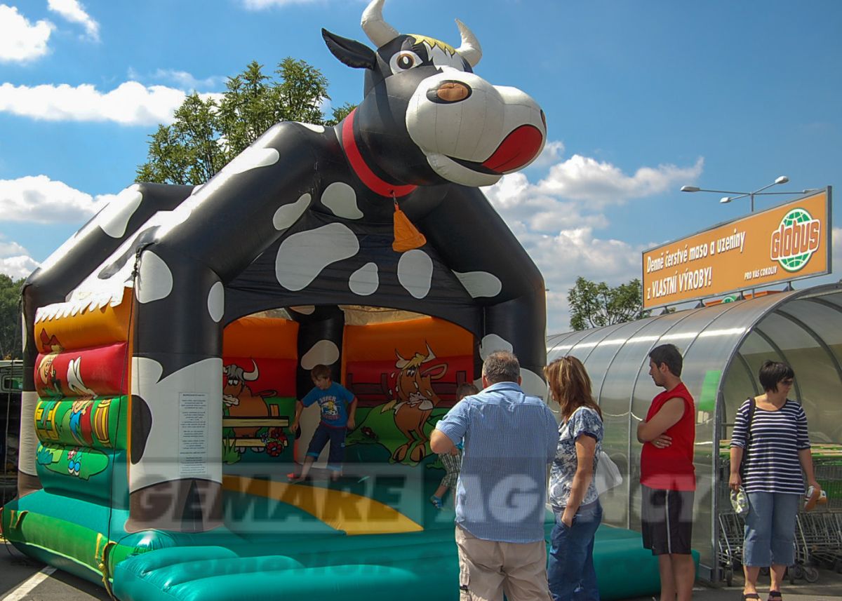 Skákací hrad "Kravička" ocenia nielen malý farmár, ale každé dieťa. Skákací hrad Kravička je ďalším zo skákacích hradov sa zvieracie tématikou a jedná sa tiež o zastrešený skákací hrad. Skákací hrad Kravička je vhodný pre detský deň, firemné akcie, poľnohospodárske výstavy a veľtrhy.