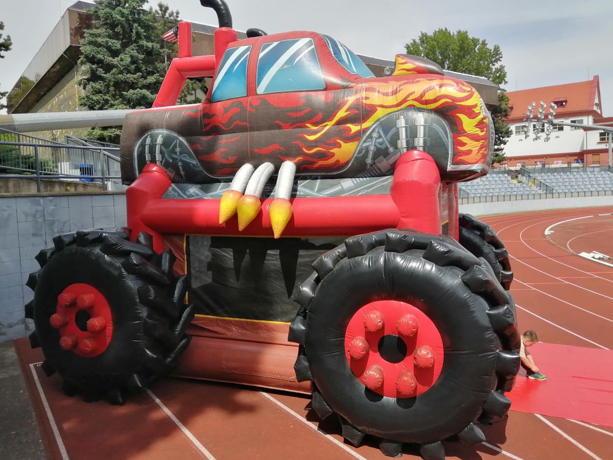 Nafukovacie atrakcie skákací hrad Monster Truck je k dispozícii pre všetkých malých pretekárov a pretekárky. Skákací hrad Monster Truck je zastrešený, takže deti nezmoknú ani v daždi. Ponúkame na prenájom ako jediní v SR.