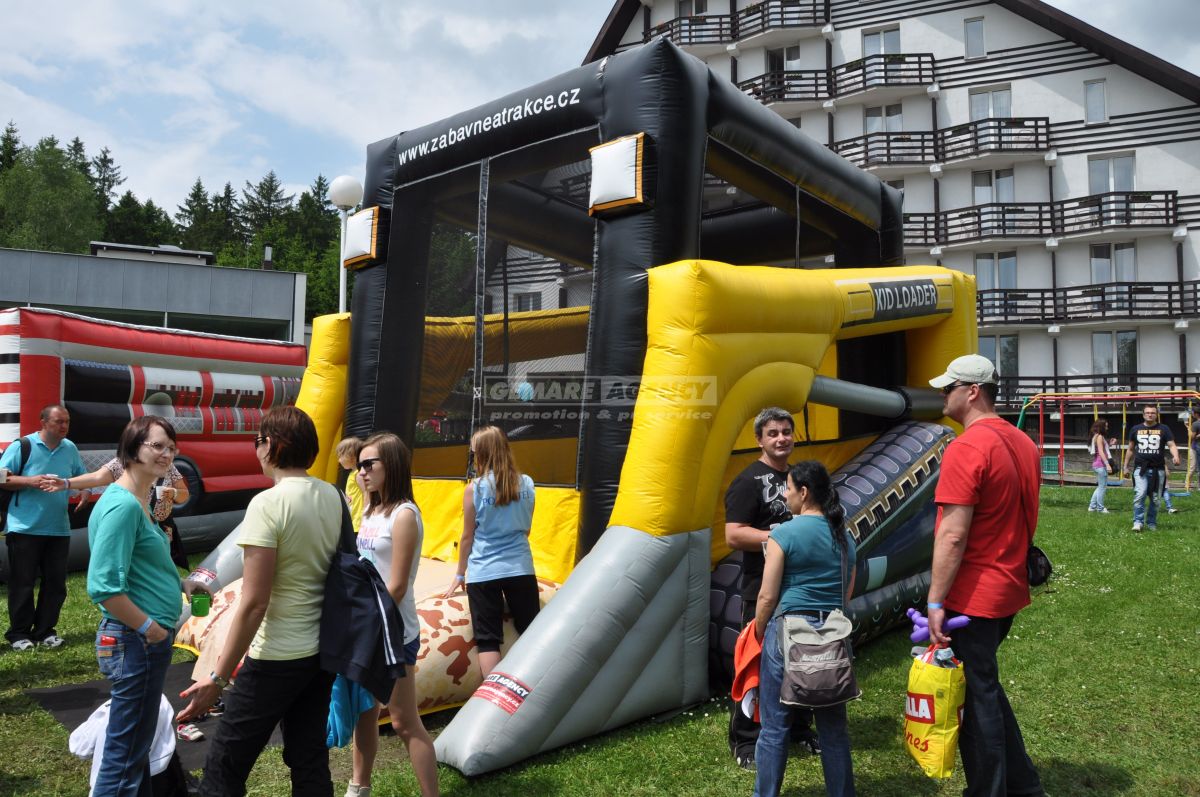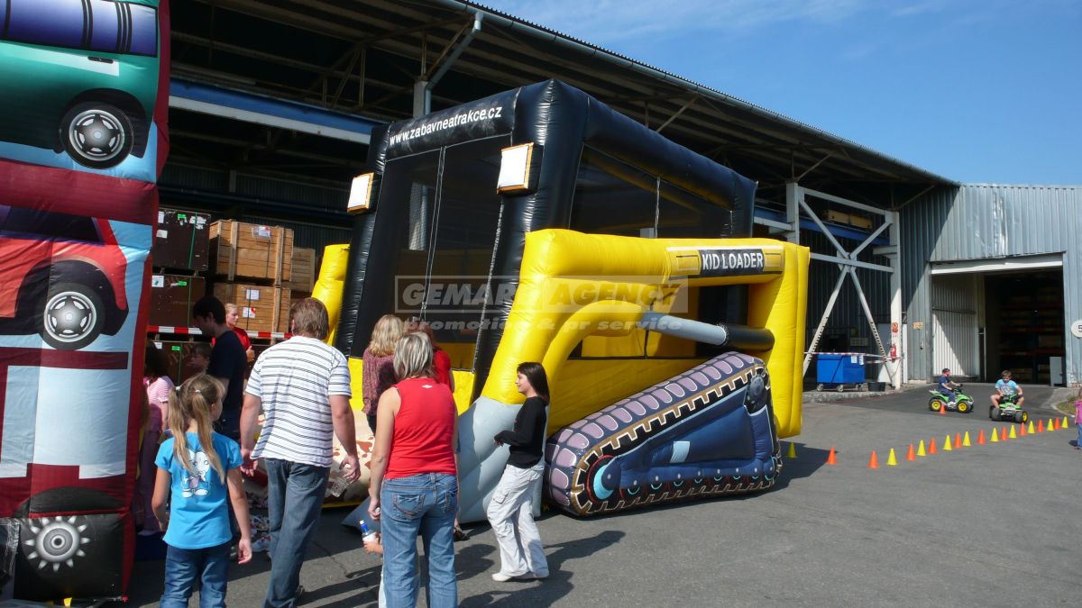 Exkluzívny skákací hrad v podobe pracovného nakladače poteší malých aj veľkých kutilov. Tento typ skákacieho hradu sa hodí na dni otvorených dverí stavebných firiem, výrobcov stavebných strojov a veľtrhy.