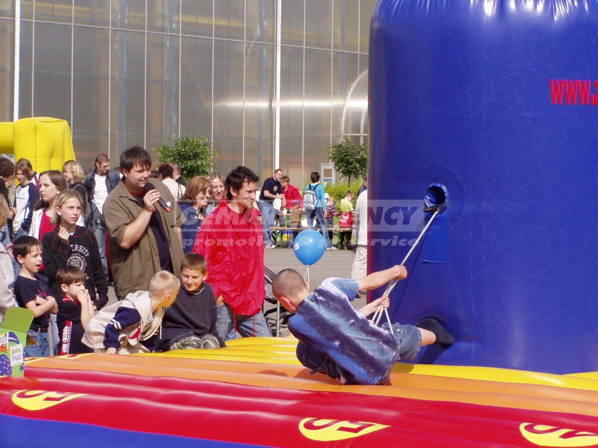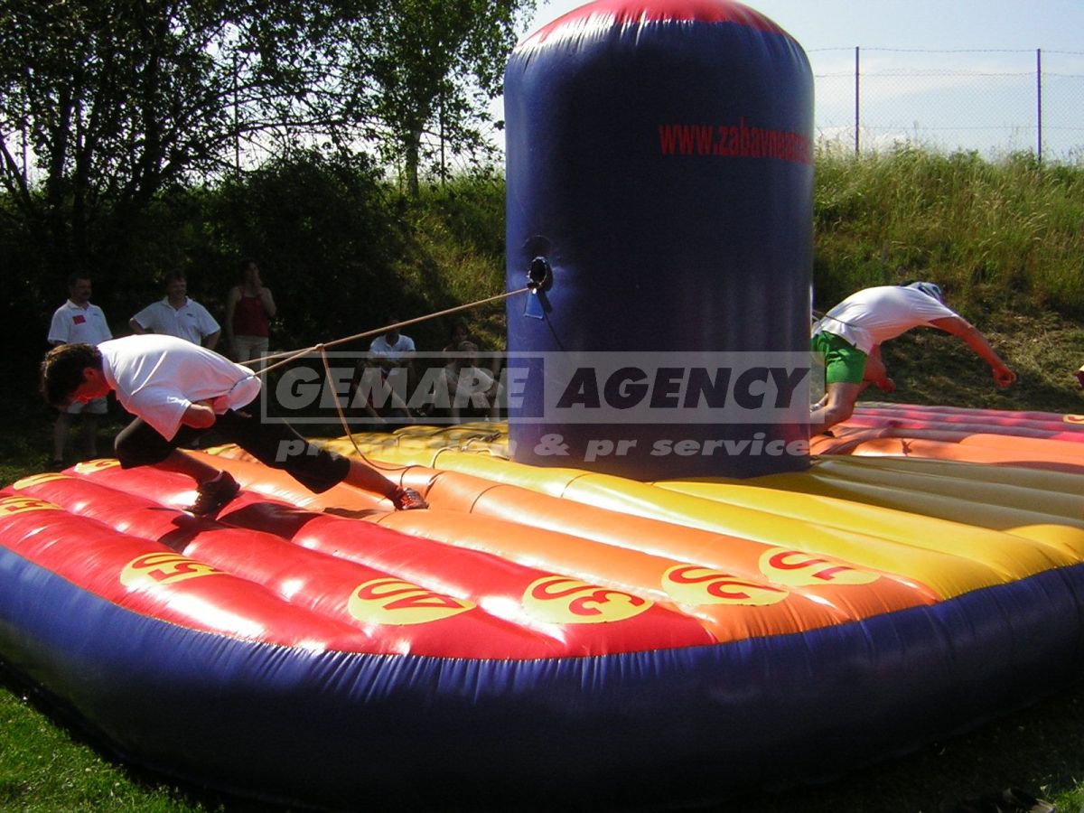 Equalizer je neobvyklá nafukovacie športové atrakcie, ktorá neúprosne preverí silu a mrštnosť súťažiacich. Na atrakciu Equalizer sú dva súperi navzájom uviazaní na lanách a preťahujú sa. Kto pritiahne súpera bližšie k svojej strane, vyhráva. Atrakcie Equalizer je úplne bezpečná - nafukovací základňa aj stĺp istí každý pád a náraz.