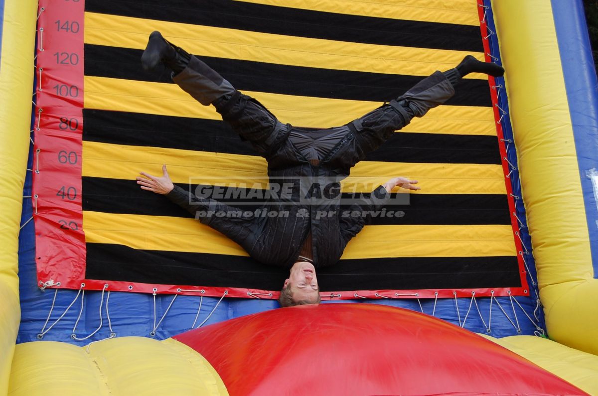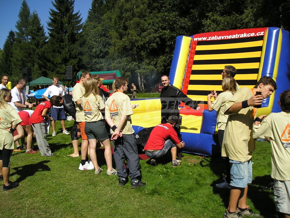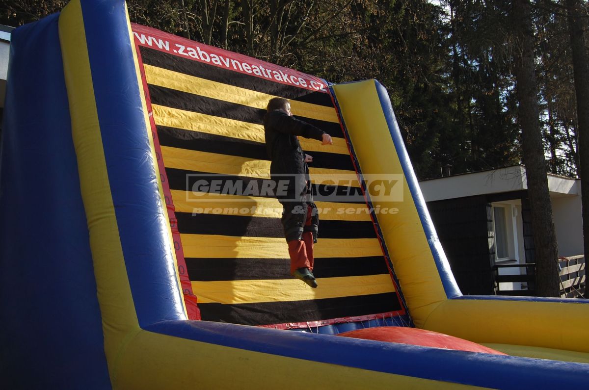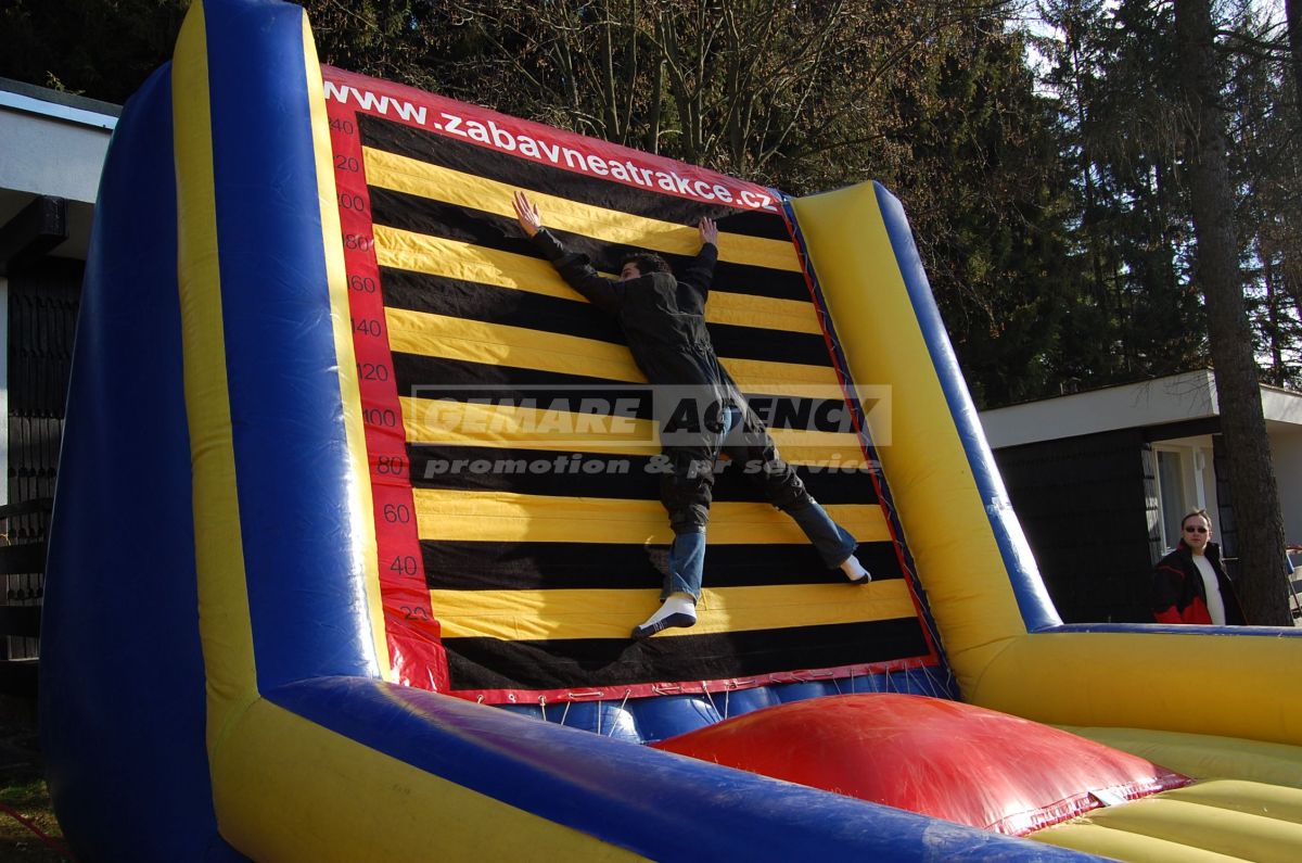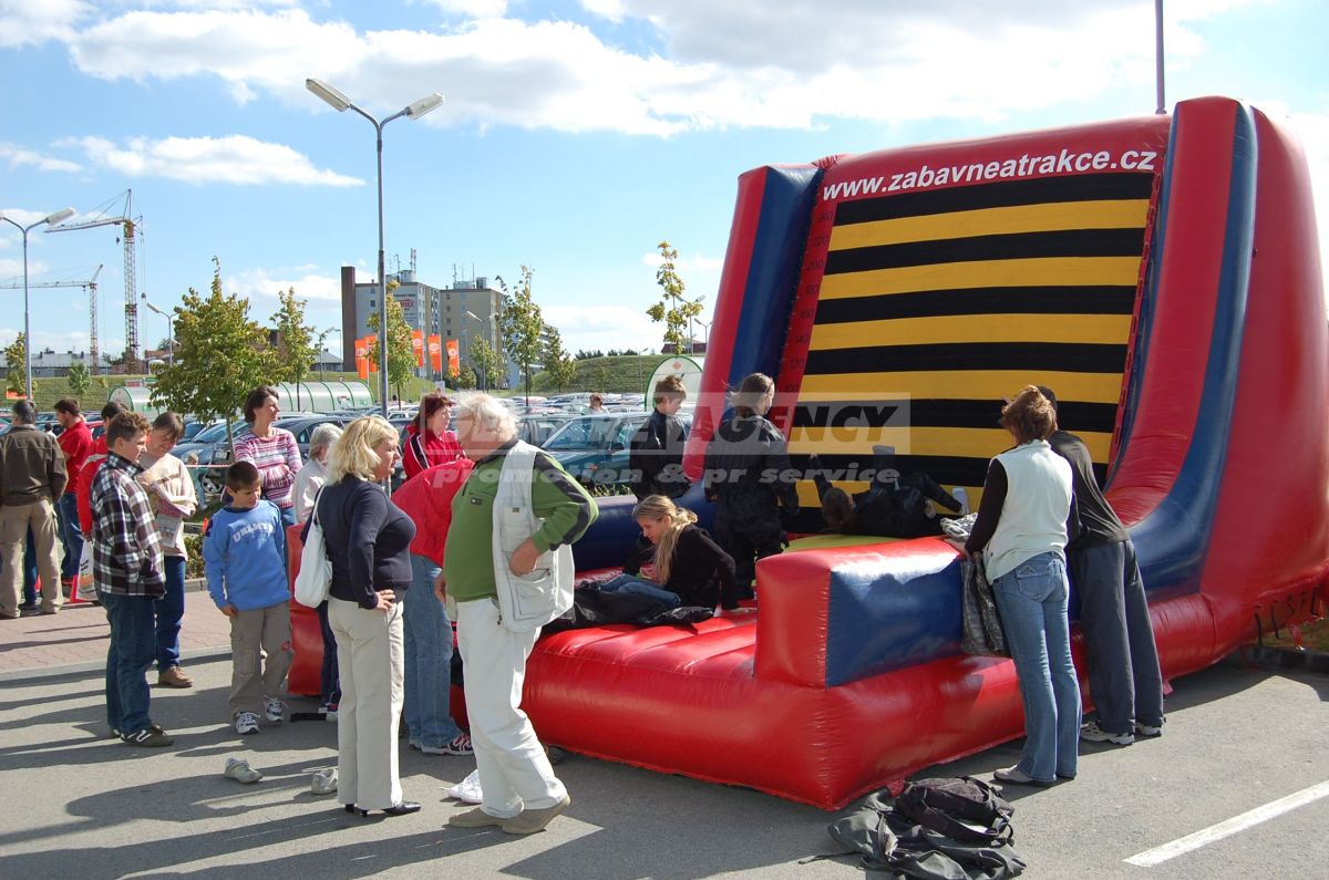 Atrakcie Mucha je jednoduchá nafukovacie atrakcie, ktorá baví ako účastníkov, tak aj divákov okolo. Atrakciu Mucha tvorí rovná základňa a odrazový mostík, na ktorý sa postaví účastníci v špeciálnych oblekoch zo suchého zipsu. Úlohou je sa poriadne odraziť a skočiť na kolmú stenu. Oblek zaistí pevné prichytenie a mucha je na svete! Súťaž o najlepší muchu vyhráva ten, kto sa zachytí vyššie!