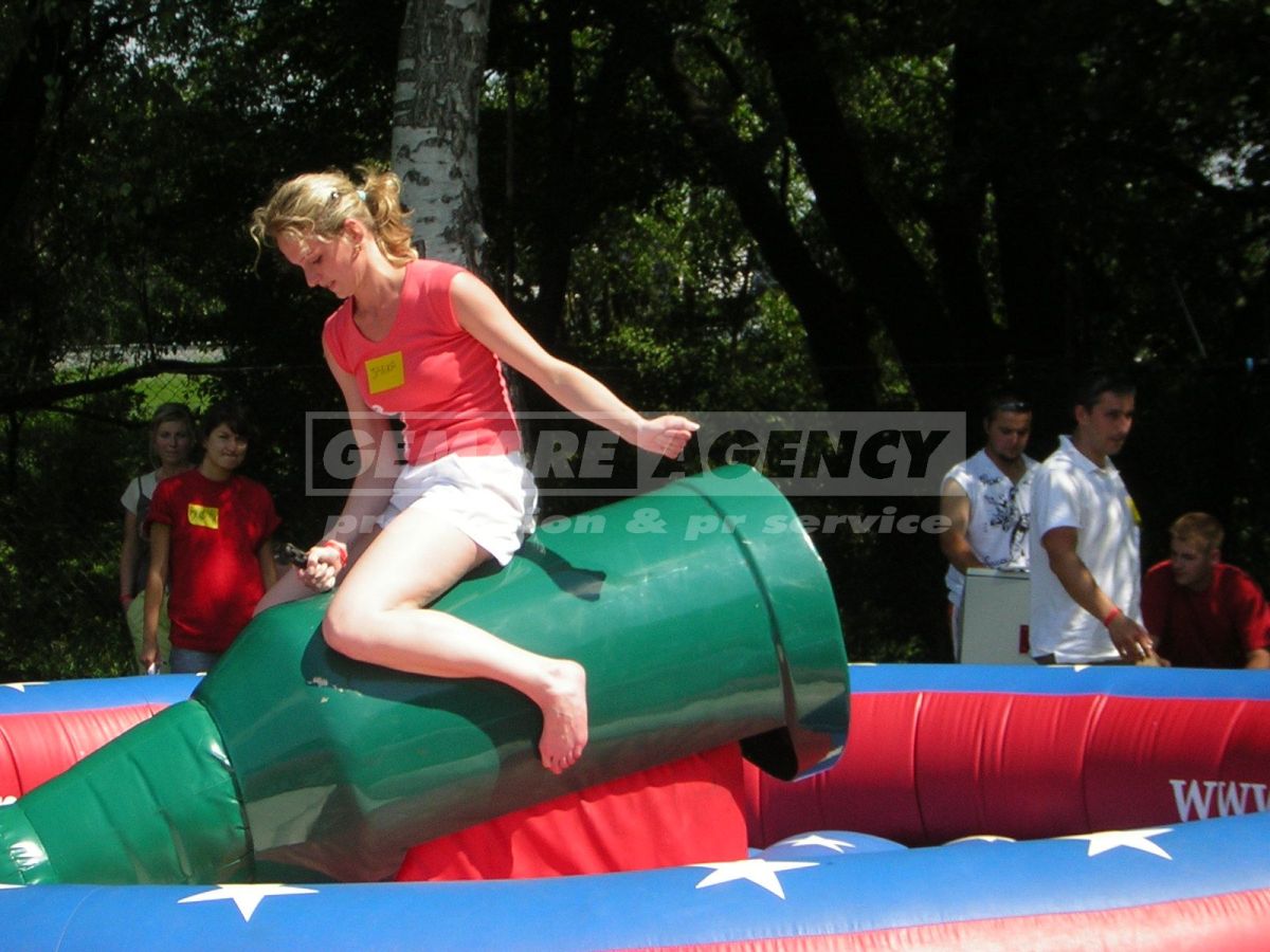 Rodeo bottle, rodeo fľaša patrí do rovnakej kategórie ako elektrický býk alebo surf simulátor. Úlohou jazdca je udržať sa na rodeo fľaši čo nejdéle. Rodeo bottle, rodeo fľaša je vhodná pre roadshow, promo akcie, veľtrhy, reklamné akcie a party propagujúce alko aj nealko nápoje.