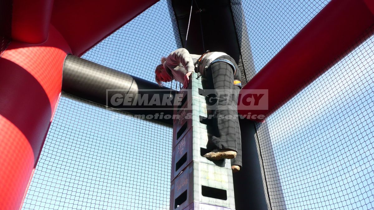 Úlohou súťažiacich je postaviť čo najvyššiu vežu z plastových prepraviek a navyše po nej vyliezť až na samotný vrchol. Towerbuilding je atraktívny atrakcií pre všetkých dospelých na firemných akciách, teambuildingu a na ďalších príležitostiach. Zahrajte si na akrobatov sa športové atrakcií Towerbuilding!
