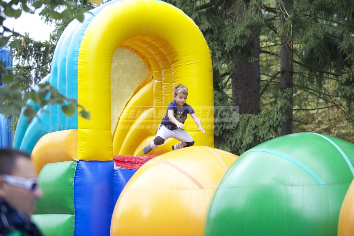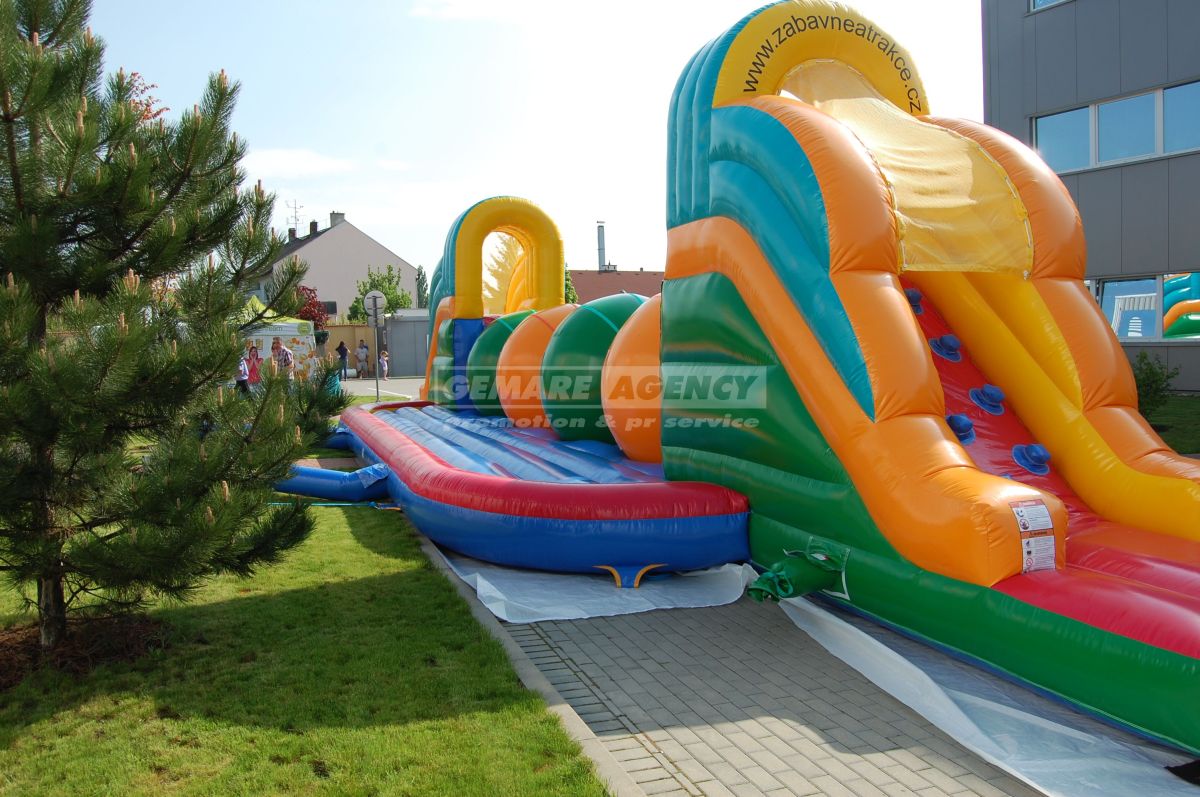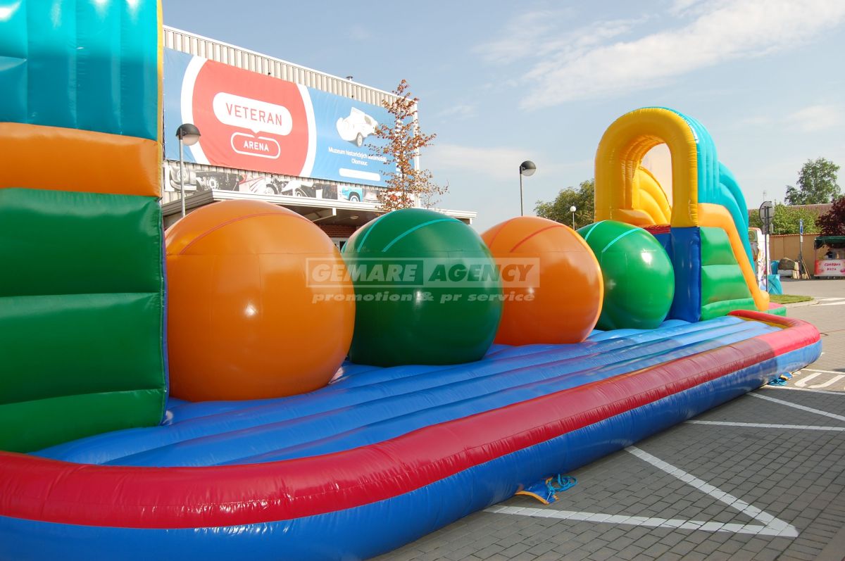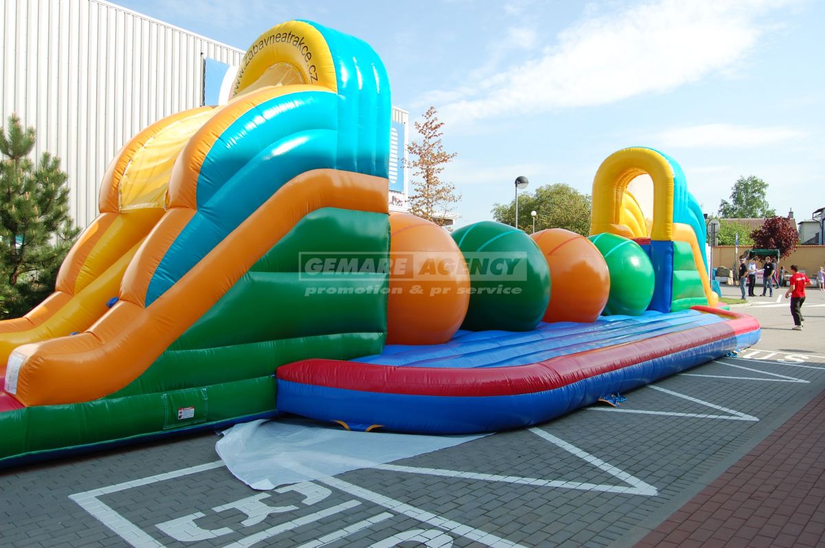 Legendárny prekážková dráha z populárnej súťaže "Wipe Out". Na súťažiacich sme však hodnejšej a miesto pádu do studenej vody, ponúkame mäkký dopad do nafukovací matrac.